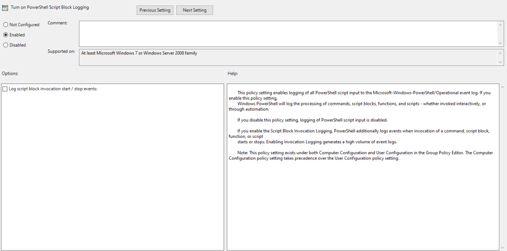 Due to these policies, it’s often simple to find malicious PowerShell behavior (if you’re logging and know what to look for). A malicious script was executed and you need to know the contents? It’s in the PowerShell operational event logs. Someone got in and ran some malicious commands? PowerShell operational event logs!