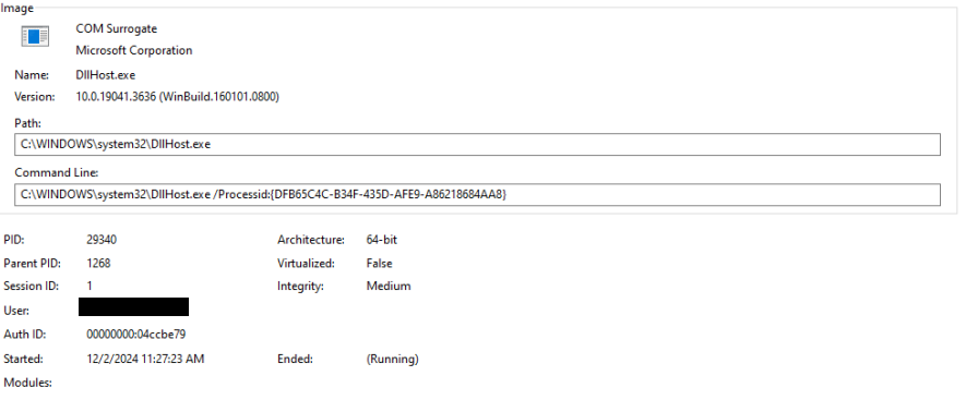 This is not a feasible approach for live monitoring, but it does work when dynamically testing samples after the fact. DllHost appears to be the executor of WSL’s will, as far as I can tell. Each test I did listed a DllHost execution actually performing the action on the host.